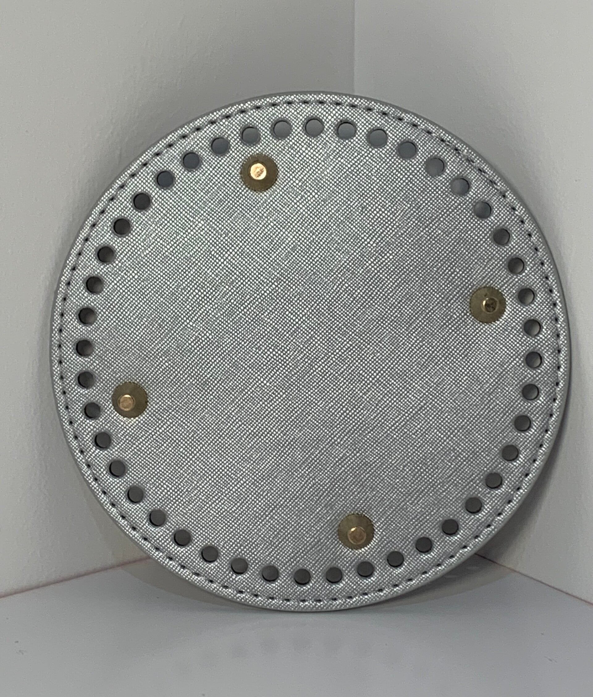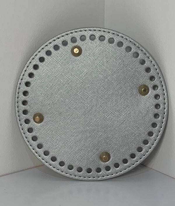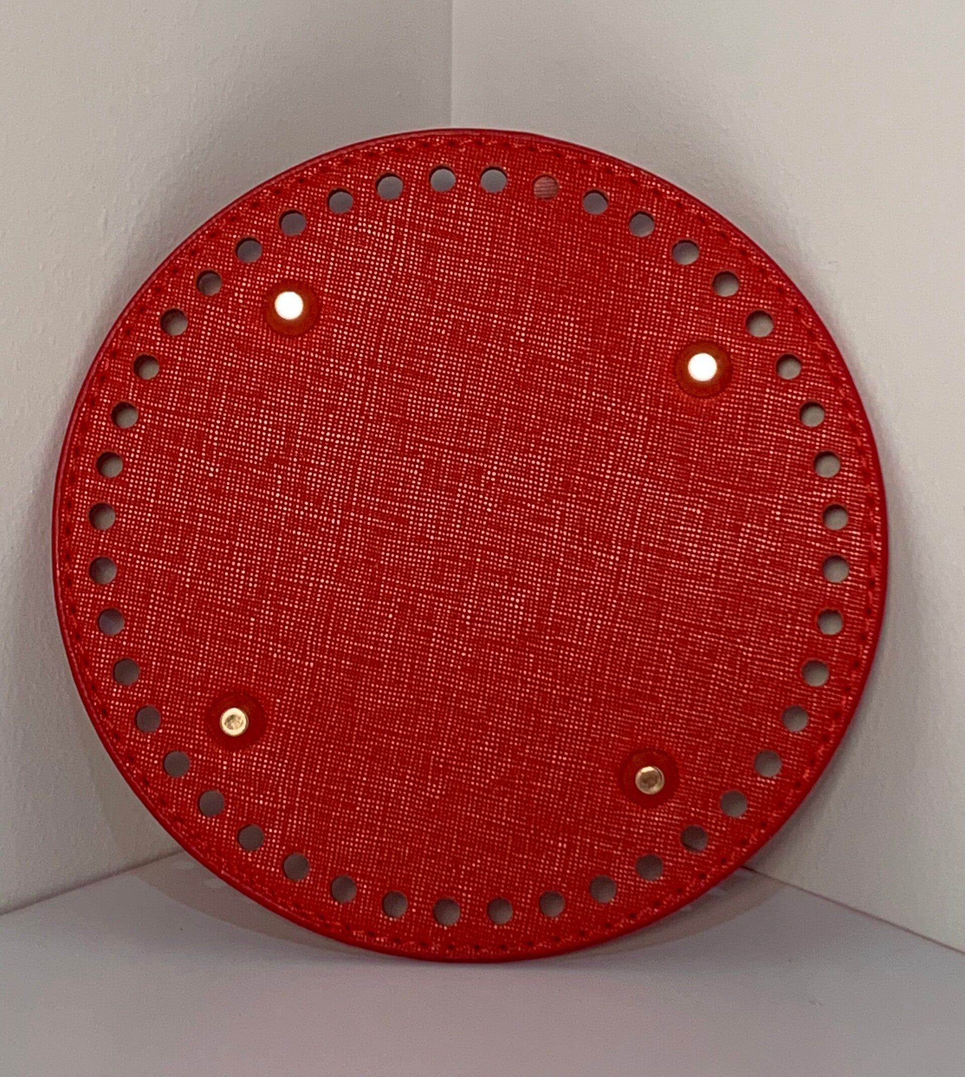 Leather base in a variety of colours that can be chosen for a bespoke crochet handbag.